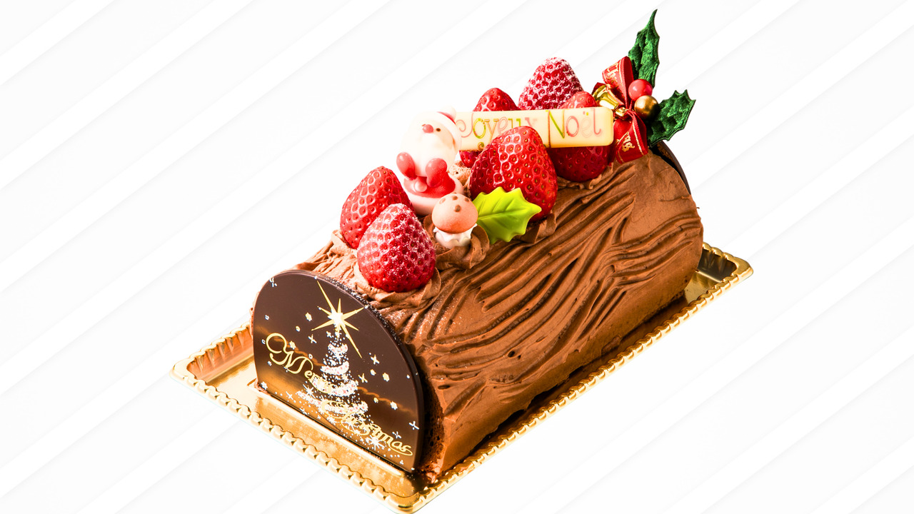 しっとりショコラスポンジにクリームといちごを巻き込み、まるで切り株のように仕上げた伝統のクリスマスケーキ。 濃厚チョコと甘酸っぱいいちごのハーモニーをお楽しみください。