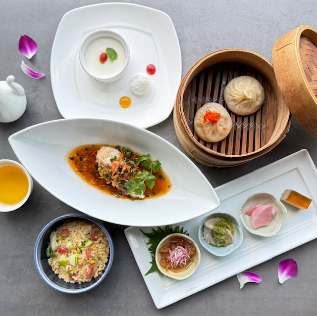 Lunch Course 3480 yen, Joe's Famous Soup Dumpling, Stir-Fried Plump Prawn with House Made Mayo, Soy Braised Shark Fin and 3 Other Dishes