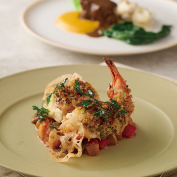 "日ごとに寒さが深まる季節。冬に美味しい食材を合わせて、アミューズ(前菜)からデザートまで、スペシャルコースに仕立てました。メイン料理はトリュフ、フォワグラ、牛肉を使った代表的なフランス料理 “ロッシーニ風”を、とっておきの一皿にアレンジしました。