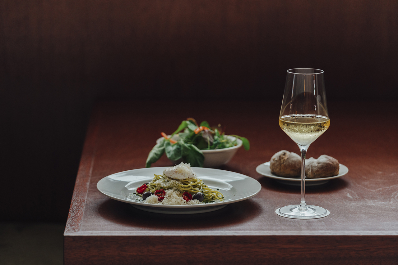 - Snow Crab and Dried Boar's Roe Aglio Eoli with Gion Parsley Salsa Verde, Linguine