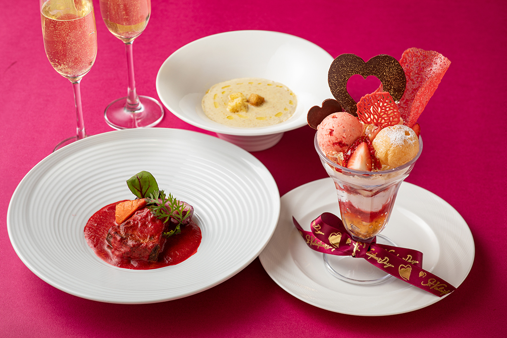 年に一度の「バレンタインデー」。苺のバレンタインパフェが付いた特別コースはいかがでしょうか?