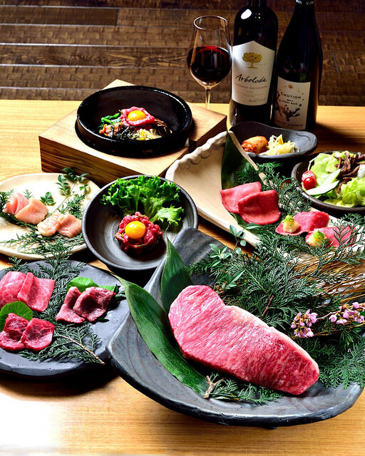 Please enjoy a slightly luxurious banquet where you can taste high-quality Kuroge Wagyu beef. Enjoy special steaks, salted tongue, hormones, sleet grilled front ribs and rare parts unique to buying a whole dog, and finish off with stone-grilled bibimbap. It is a course that is perfect not only for banquets, but also for entertainment and dinner parties. ☆ Add 2,500 yen (tax included) for 120 minutes of free drinks (L.O 30 minutes before)