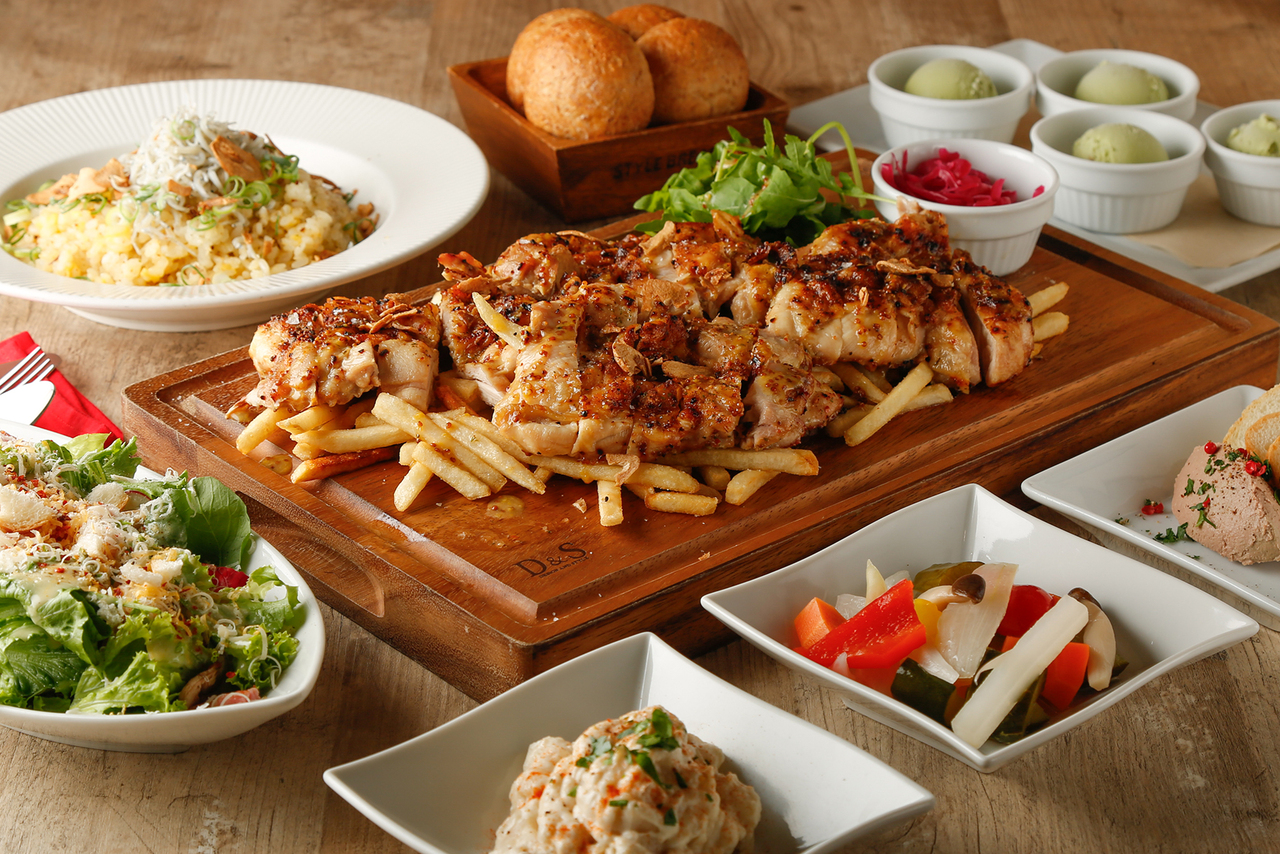 Please order drinks a la carte on the day. There will be an additional charge. Please choose three appetizers and hot dishes, two main dishes and pasta dishes, and one dessert. Please enjoy the dishes you have chosen as a sharing course for two people. Appetizers, pickled colorful vegetables, today's carpaccio, cold anchovy cabbage, chicken liver paste, poached lobster (+1000 yen), potato salad with blue cheese, European uncured ham, cafeteria-style ratatouille, Hokkaido deer pate, shrimp and broccoli aglio e olio, Caesar salad with mixed vegetables, hot dishes, beef tongue and mushroom ajillo, open sandwich with snow crab cream, hacher parmentier, fried shrimp spring rolls, main course, Atlantic salmon mi cuit with persciado, beef filet and foie gras Rossini, truffle mashed potatoes (+2500 yen), roasted duck filet with blackcurrant sauce and honey mustard, beef sirloin steak cafe de Paris style, domestic beef cheek stewed in red wine Dessert: Buche de Noel, Pistachio Tiramisu, Chocolate Fondant, Snow crab cream pie, Crème de lomaire and sea urchin accents, Viande: Roasted beef fillet with truffle mashed potatoes, Porcini sauce, Dessert: Buche de Noel, Pain: Whole wheat bread