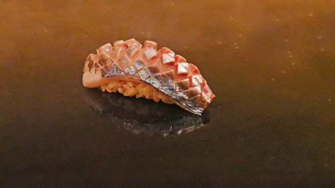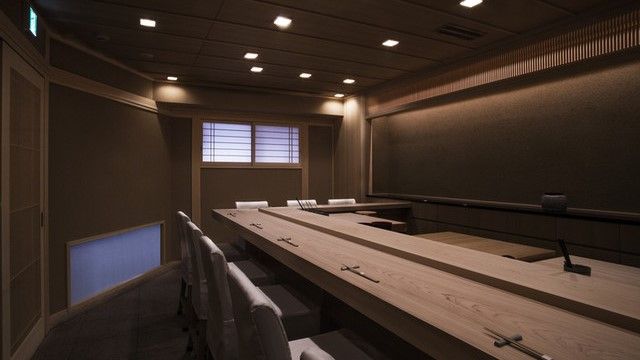 表通りの喧騒を離れた静かな場所に佇む鮨店です。カウンターには無垢の檜の一枚板を使用するなど木を多用した内装、九州の職人の手による器など細部にまで心を配り、穏やかな空間を作り上げています。 ネタはすべて青森・八戸から直送しており、東京では見ることの少ない魚も抜群の鮮度で届きます。赤酢と塩を使った酢飯はネタとの相性も最高です。日本酒と合わせて召し上がればさらなる美味がお楽しみいただけます。