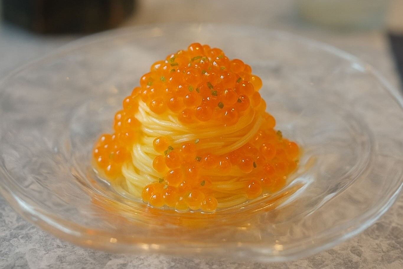 日本橋蛎殻町にあるレストラン。鮨店で扱うような新鮮な魚介を中心に、その日の仕入れに合わせたおまかせコースを提供しています。前菜からメイン、デザートまで緩急のある流れで構成される料理は、素材の力強さと繊細な技が調和した味わい。店内はカウンター席のみの落ち着いた空間で、調理の音や香りも含めて料理の時間を楽しめます。料理に合わせてイタリアやフランスを中心にセレクトされたワインも揃い、食事の余韻をゆっくりと味わえます。