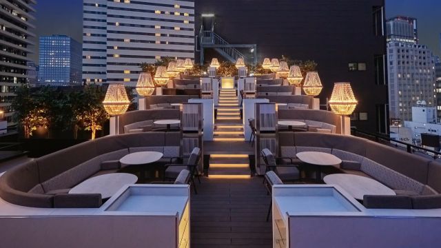 開放感あふれるルーフトップバー。心地よい夜風と絶景を。