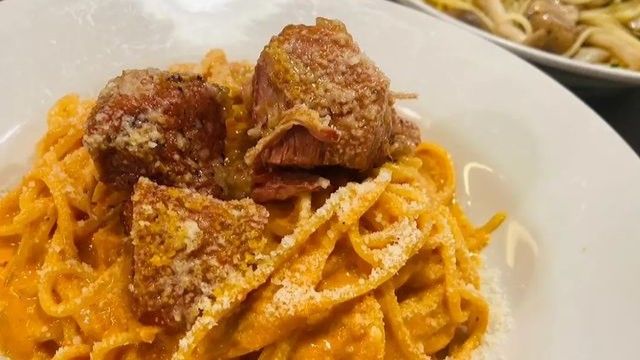 Caprese with tomato and mozzarella cheese Fresh fish carpaccio Homemade chicken liver terrine Smoked salmon salad Rigatoni with gorgonzola Tomato cream spaghetti with raw sea urchin Angel shrimp Steak with Livorno-style foie gras Homemade dessert Coffee or tea
