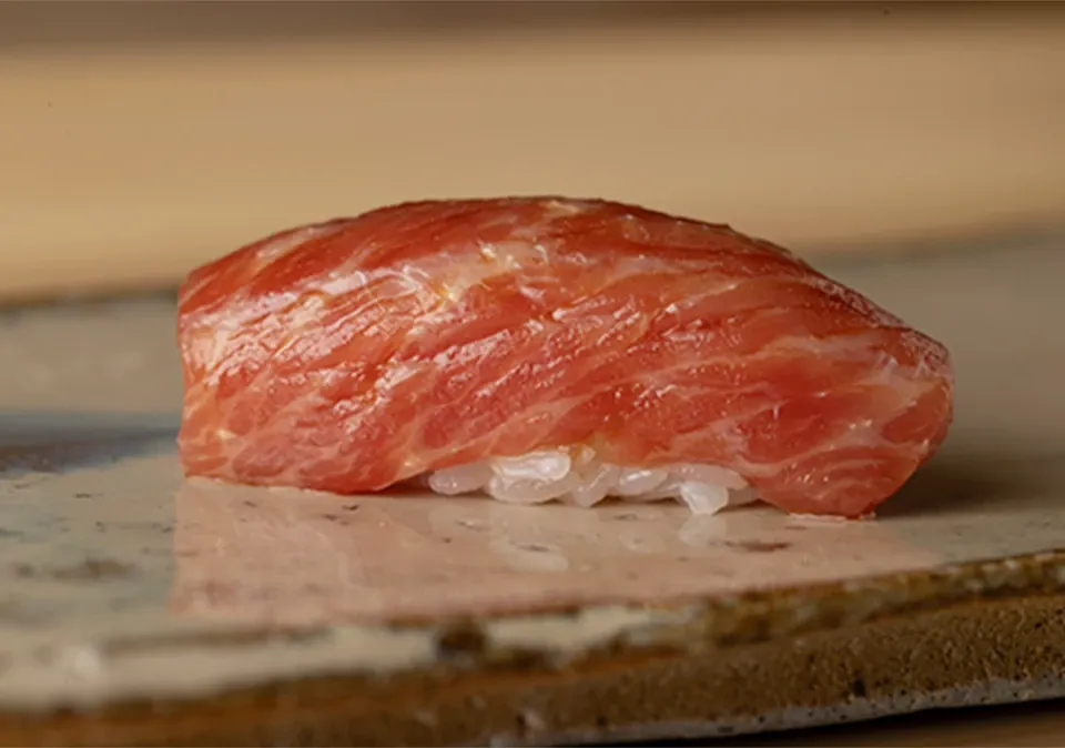 Mitsui, tucked away in a quiet corner of Azabu-Juban, is an elegant sushi restaurant known for its seasonal omakase course. From delicate appetizers to expertly crafted nigiri, each dish reflects the chef’s skill in drawing out the natural flavors of the ingredients. The white-vinegared rice pairs beautifully with旬 seafood, creating refined bites with a lingering finish. The calm, refined interior