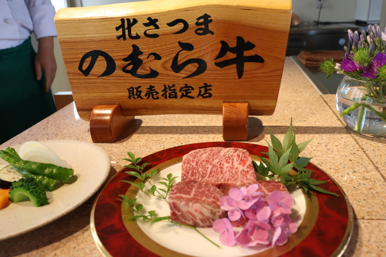 鹿児島県のブランド牛(のむら牛)をはじめ、9月に解禁された活きの良い旬の伊勢海老を目の前で焼き上げます。