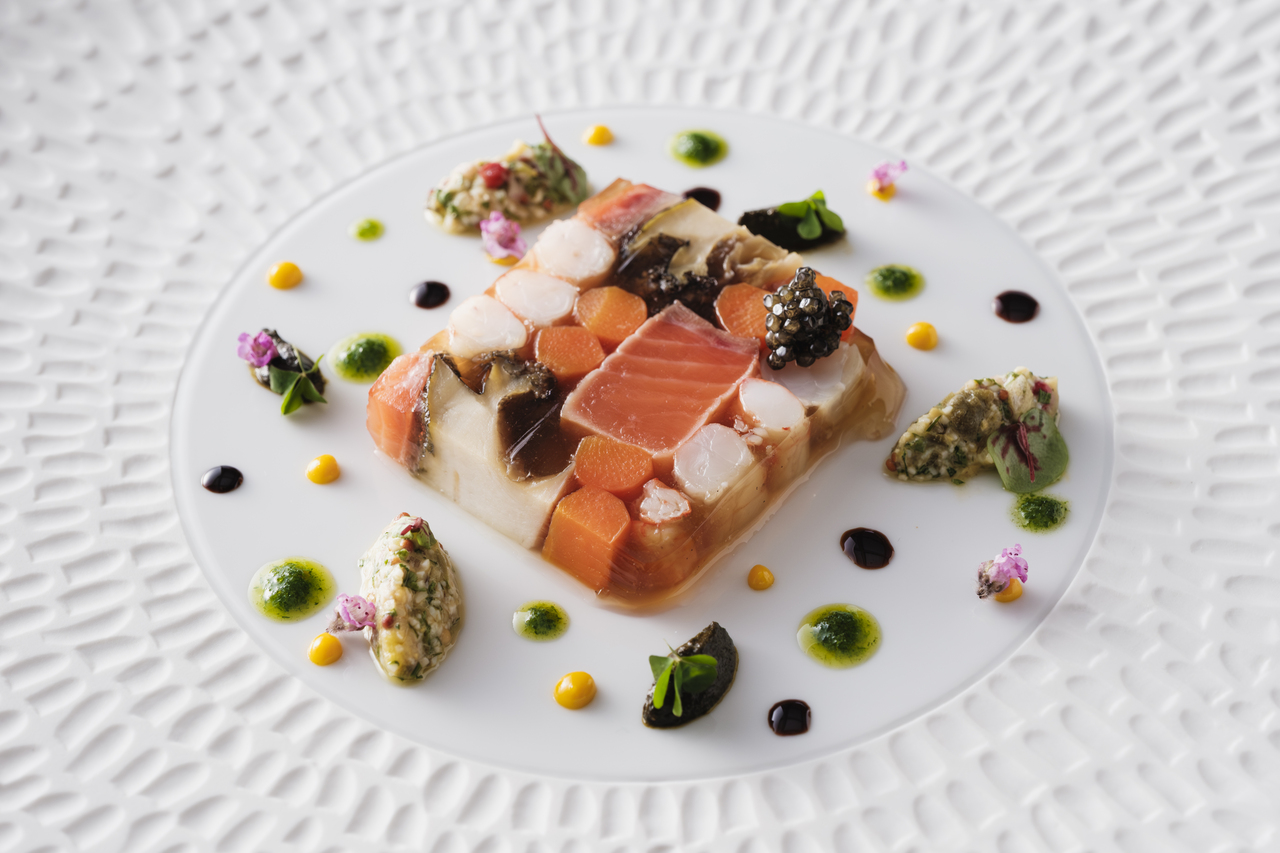 The Art Nouveau aesthetic dwelling in the supreme artworks of Emile Gallé, a French artist who pursued the mysteries of the natural world, is expressed in French cuisine. The organic curves of flowers and plants, and Gallé's unique, poetic gradations, are combined to create an original course menu by Chef Keisuke Fujitani of SIMOSE French Restaurant, where you can experience the delicate expressions of glass as it shifts through the light. Enjoy a moment where nature and art resonate with each other, satisfying all five senses.
