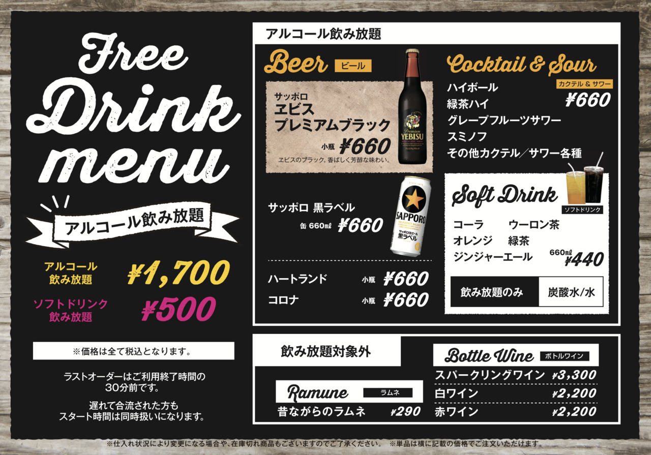 <b>*未成年飲酒や運転者であることが発覚し、会場利用や飲み放題をお断りさせていたいた場合、一切の返金は致しかねます。予めご了承くださいませ。