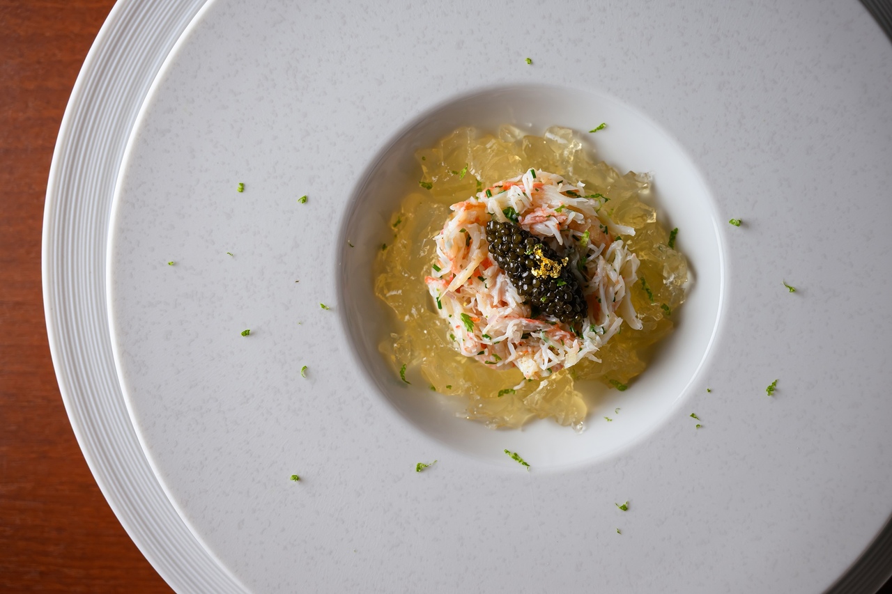 香住カニのサラダと聖護院カブのブランマンジェ 海藻のジュレ