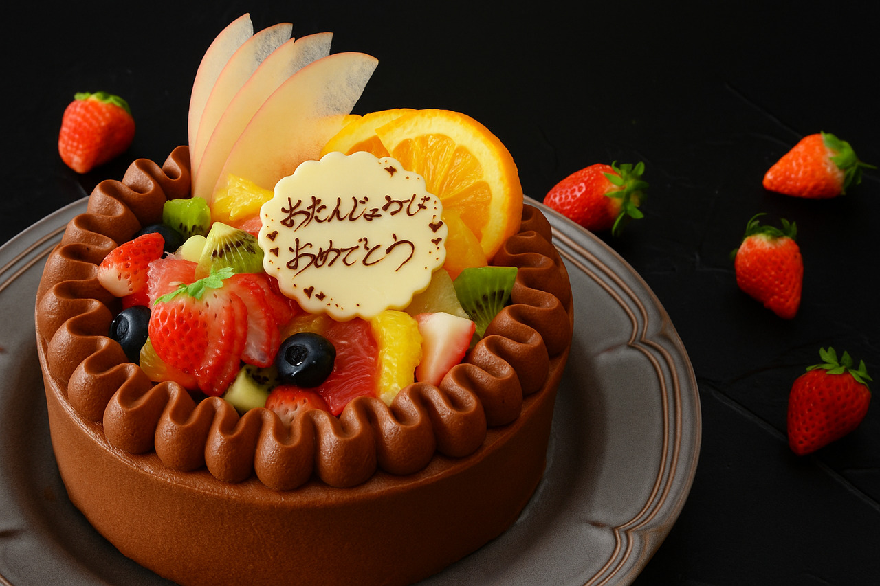 ◇お食事のご予約と一緒にご注文ください◇バースデイ&アニバーサリーケーキ【6号18㎝】生チョコクリーム&フルーツデコレーション