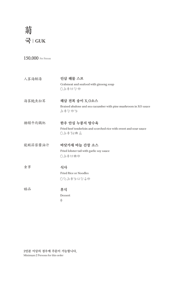 * Room reservations are available for parties of 4 or more ordering the course menu.