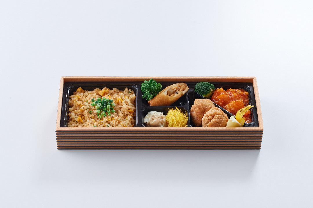 【内容】・エビと玉子のチリソース煮・蒸し点心二種・特製唐揚げ・五目炒飯・春捲き