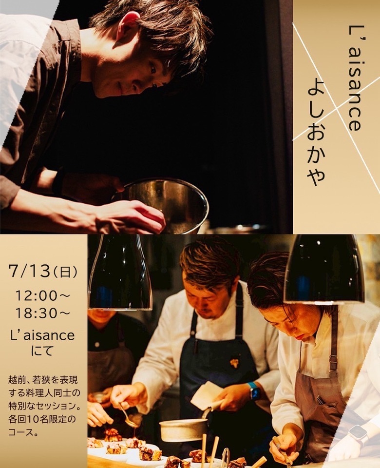 5月14日予約解禁になります。革新的な日本茶のアプローチを発信するTea Pairing Lab.西村氏が料理に合わせた至極のティーペアリングを提供。料理人の感性を持つ彼ならではのアプローチとL'aisanceの薪火料理が味わえます。