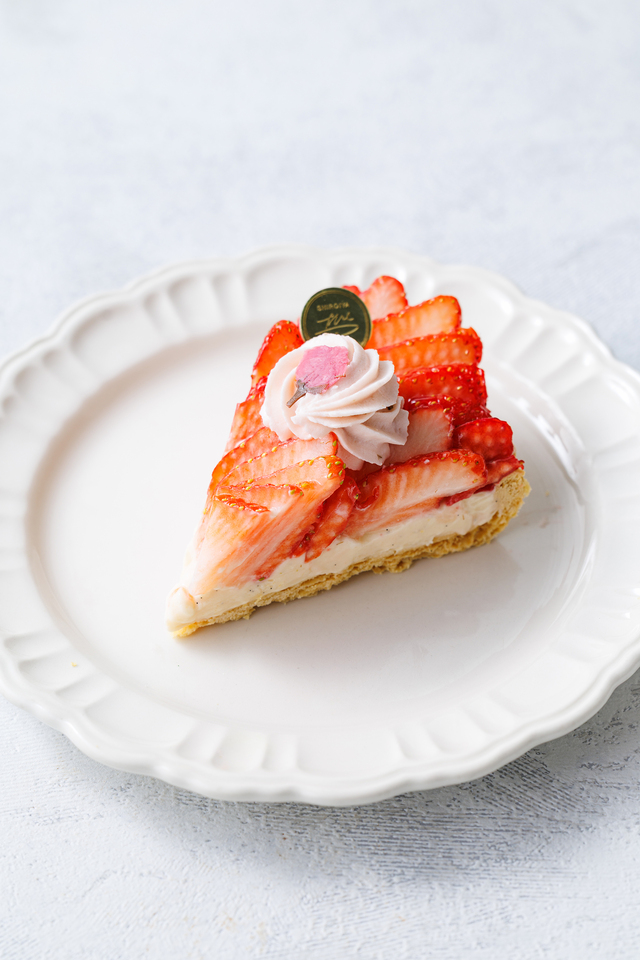 ザ・パティスリー自慢の配合にこだわった地元の牛乳と卵でつくったオリジナルカスタードをタルト生地にたっぷりのせ、群馬のブランド苺「やよいひめ」など、地元の苺をぎっしり飾り、アクセントにピスタチオをトッピングしました。