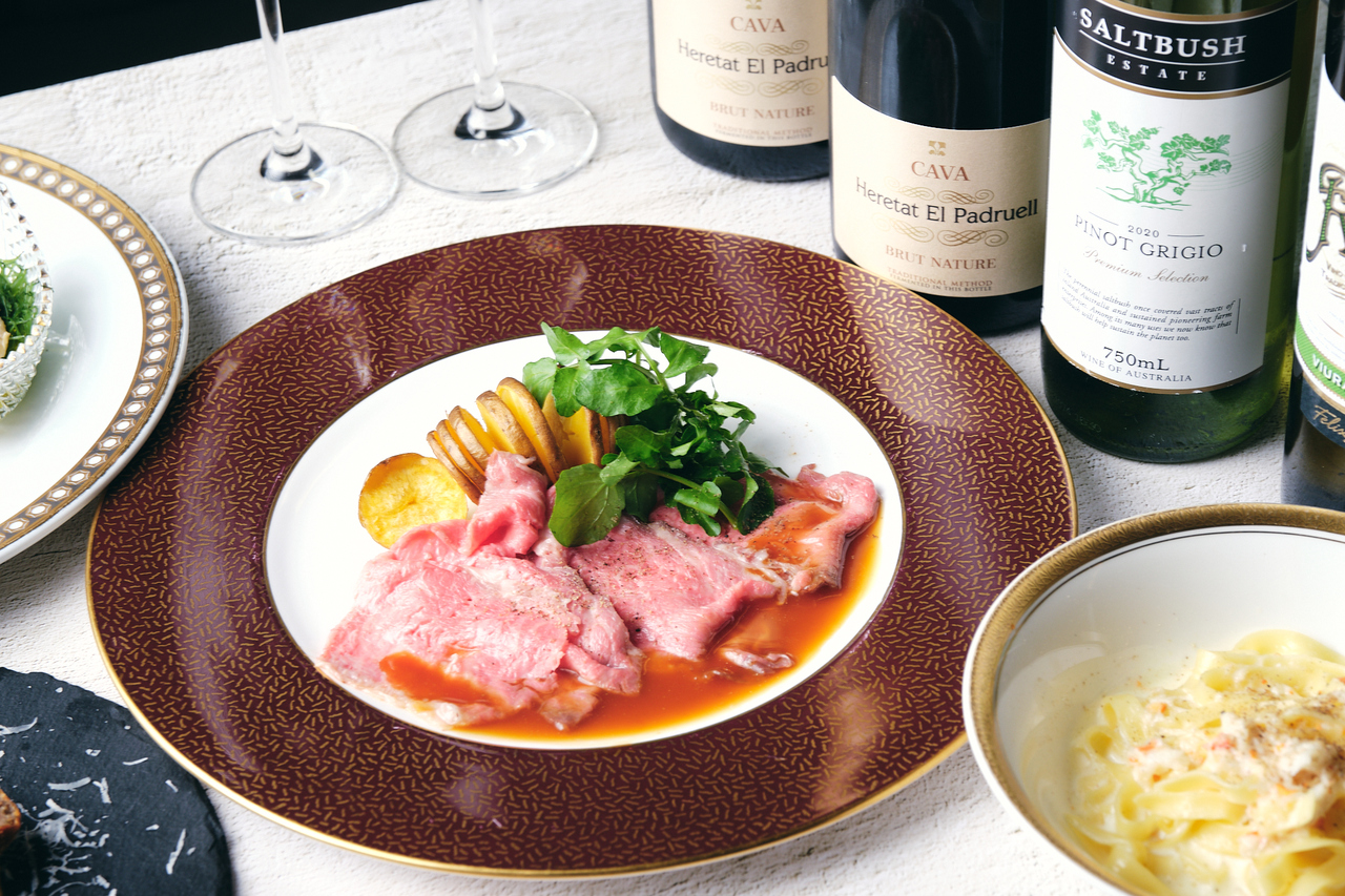 ゆったりと楽しめる飲み放題付き、ジューシーな「ローストビーフ」がメインのランチコース。