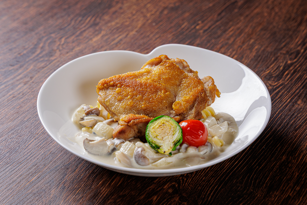 香ばしく焼き上げた鶏もも肉に、ゴルゴンゾーラとクリームをベースいした濃厚なソースをたっぷりと。ナッツの食感がアクセントになった、冬にぴったりな一品です。
