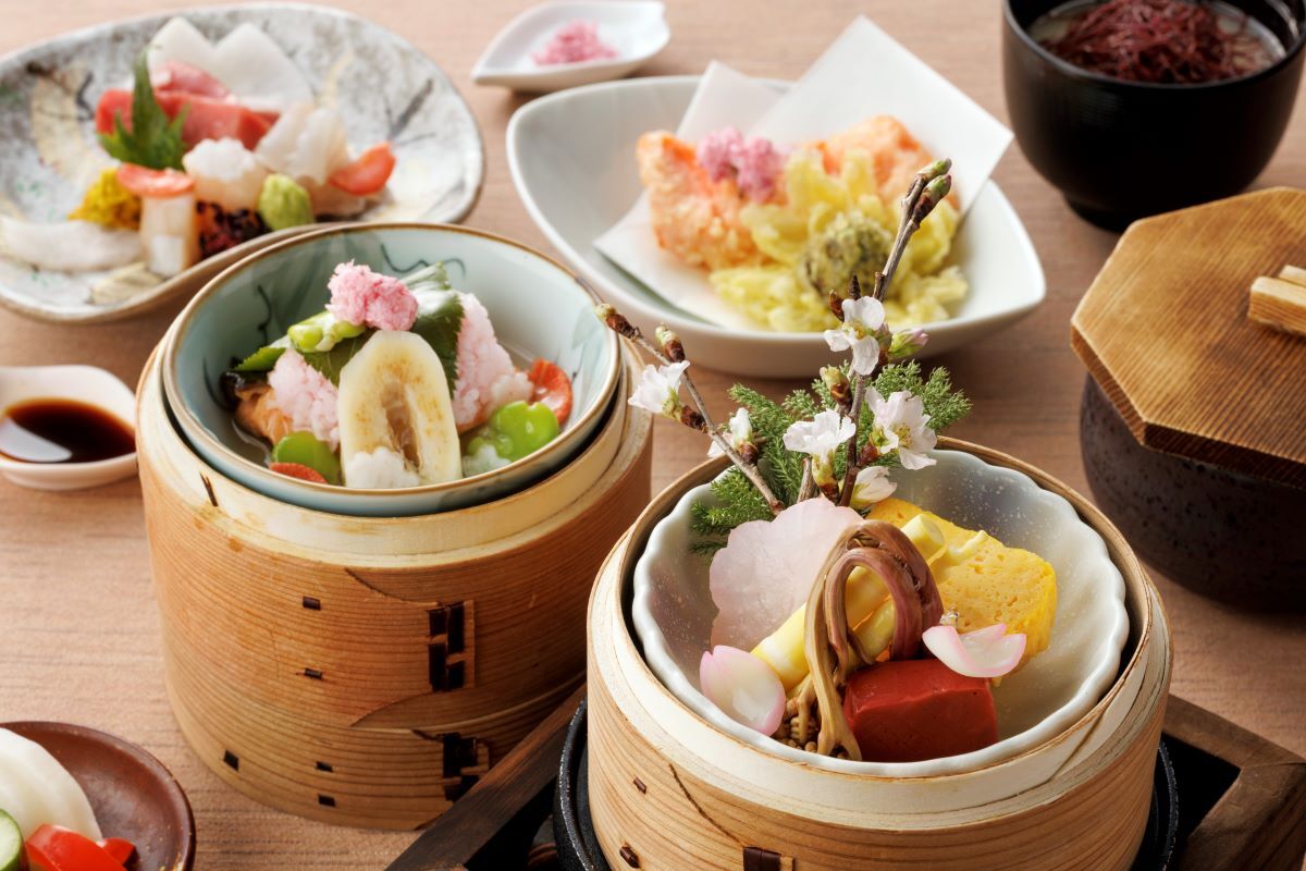 肉と魚、二種の主菜を蒸籠で味わう昼の膳道内各地を巡る美食の旅をお楽しみください。