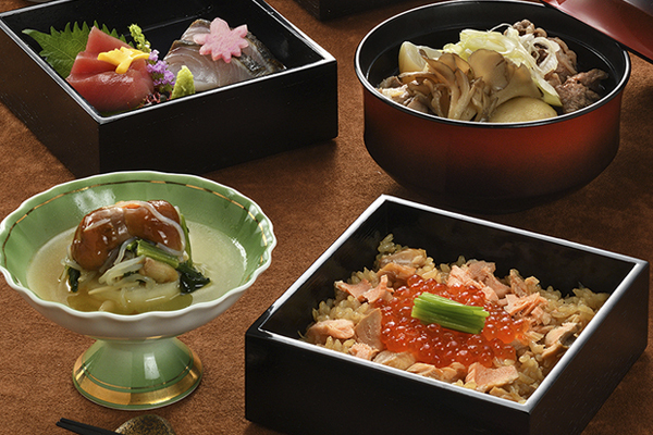 県産木野子天麩羅や旬の造里、山形郷土料理のいも煮や秋鮭はらこ飯など
