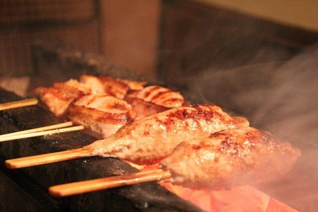 An authentic charcoal-grilled skewers restaurant in Ginza