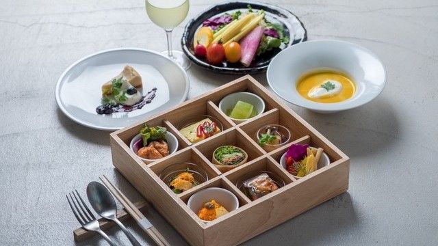 ビル一棟がヴィーガン料理を提供するコンセプトビルとなっており、一階はパティスリー、二階から四階がレストランです。テーブル席、個室席まである店内は和モダンな落ち着いた雰囲気。旬の野菜や果物を使っており、ディナーはコースメニューもご用意しています。