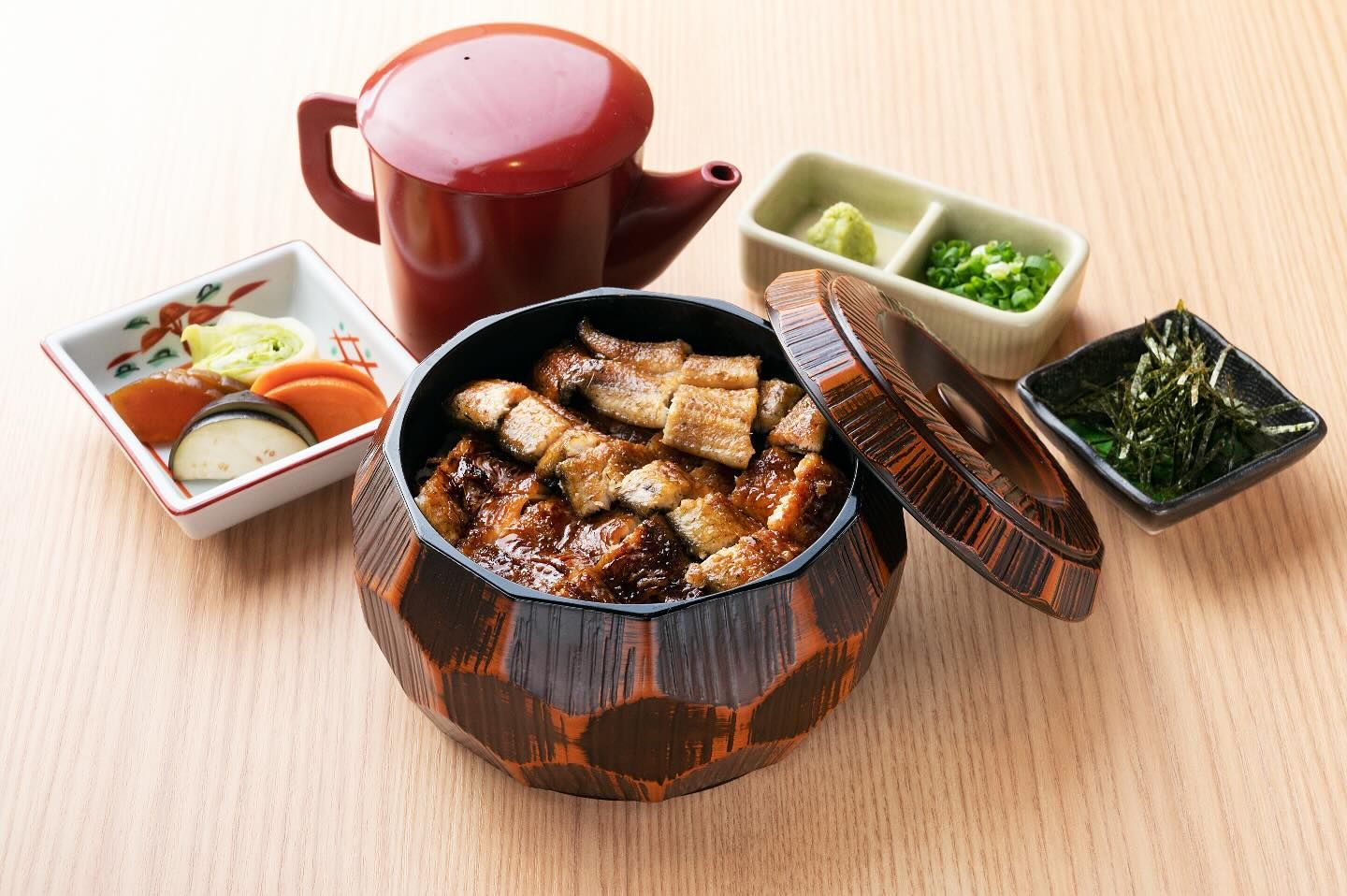 鳗鱼3/4条、高汤、调味品、米饭、清汤、腌菜