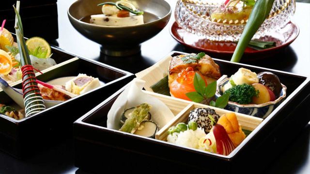 店内是以日式风格为基调的温暖舒适空间,透过大窗户可以欣赏外面的日式庭园,让心情更加的放鬆。京怀石的特徵就是使用了大量的当季食材,并可以奢侈的品尝食材原本的风味。连器皿的选择都非常的讲究,配合料理选择高雅优美的盛盘。菜单分为早、中、晚三种,分别能享受到不同的味觉飨宴。