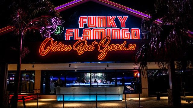 50年代や60年代の“あの古き良きアメリカ“へとタイムスリップさせてくれるオールディーズロック&ダイニング「ファンキーフラミンゴ」 煌びやかなアメリカンレトロ調のサウンドホールでは、毎夜熱い生演奏を繰り広げてきましたが、この度のブラッシュアップOPENから50〜60‘sの〈Rock’n Rollの時代〉、70〜80’sの〈Discoミュージックの時代〉〈島唄メドレー〉など、誰もが思わず口ずさむヒット曲の数々をステージに取り入れ、老若男女を問わず幅広い層が楽しめる構成になっております。