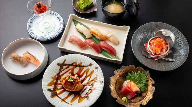 这是注重现握美味与摆盘的一套寿司全席。使用日本第一仲卸“やま幸”的金枪鱼,并包含和牛寿司,让您尽享以日本食材为主的高满意度内容。