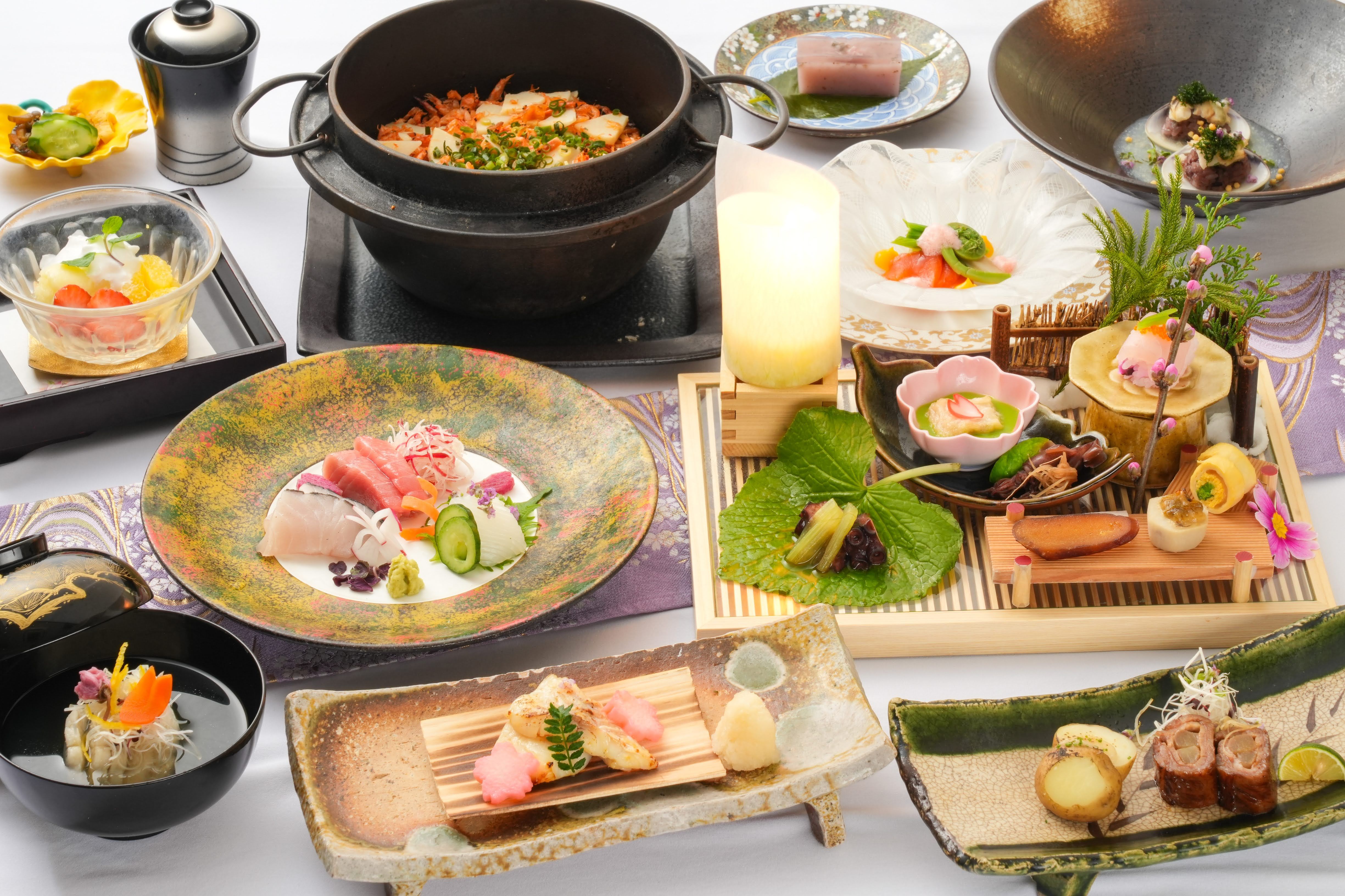 大人のための和モダン空間がコンセプトの店内からは、新宿の景色を一望することができます。伝統と革新が息づく日本料理を、お席にてゆっくりとお楽しみ下さい。 昼と夜では、それぞれ違った趣の料理をご用意しております。肉、魚、野菜など一品ごとにこだわった美しい盛り付けも自慢の一つです。 親しい方々とくつろげる個室もご利用いただけますので、特別な日のお食事の場としてもご活用下さい。