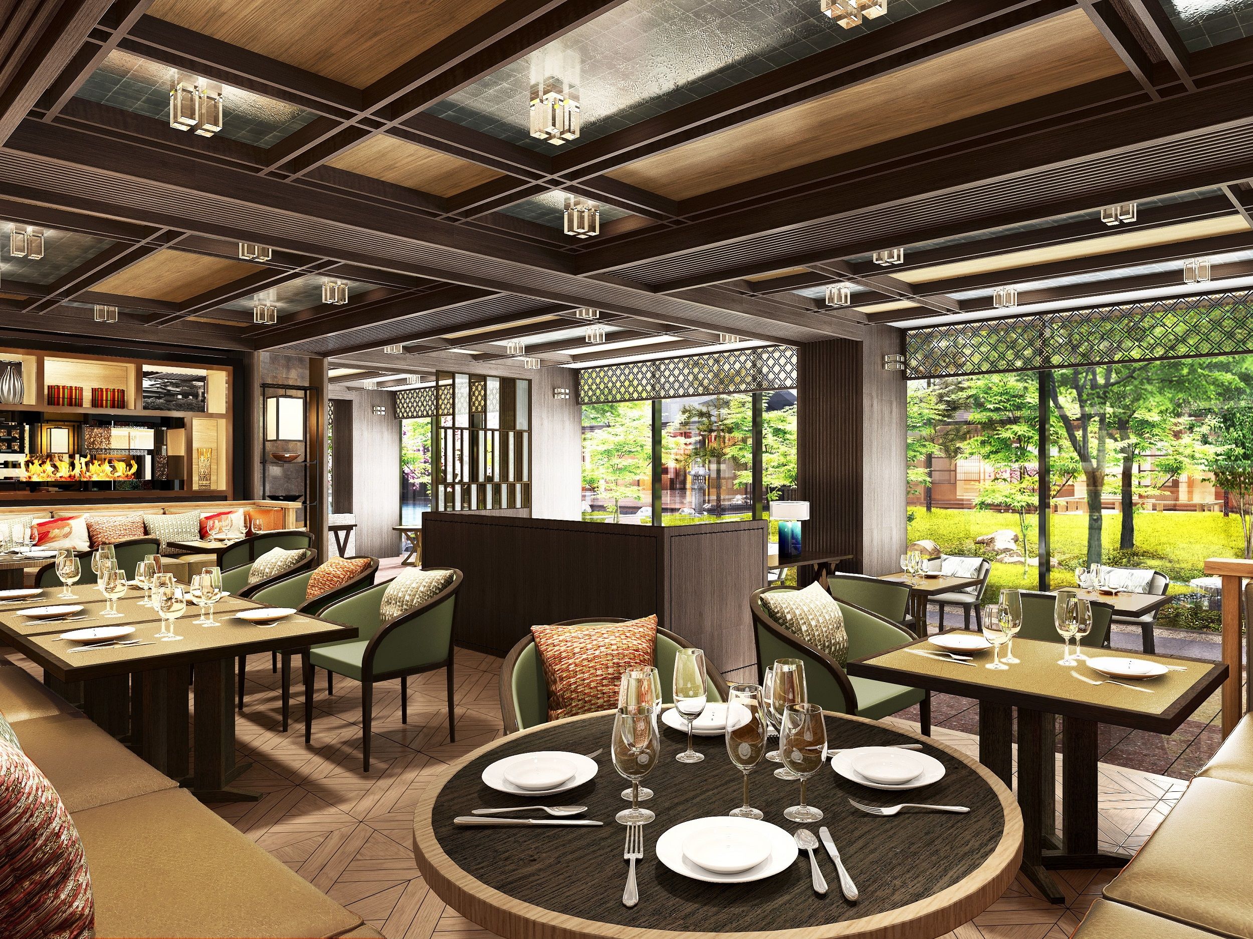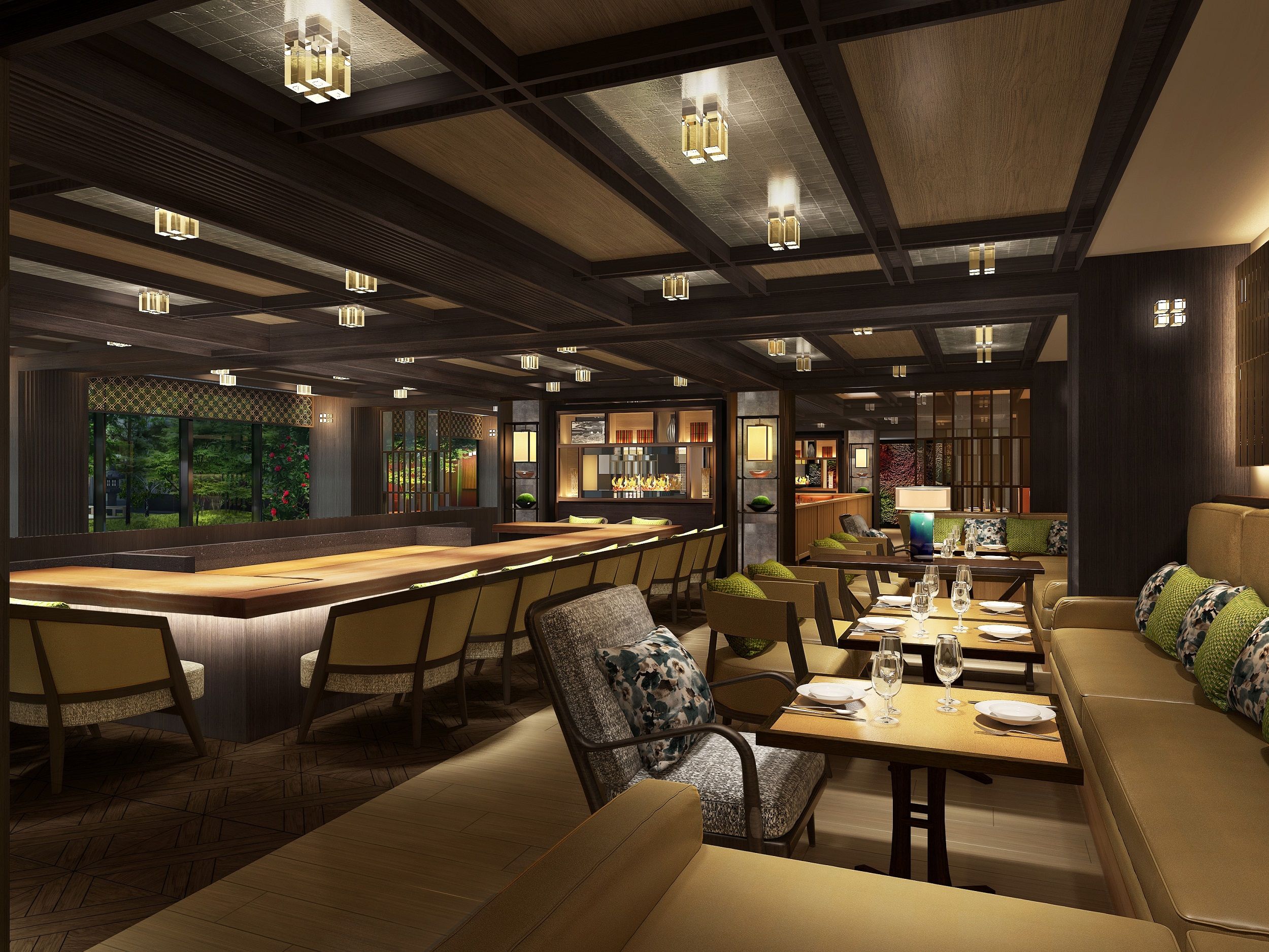 At FORNI we serve Italian dishes using ingredients from Kyoto, Italy and beyond. FORNI's centerpiece is a traditional okudo-san cooking range reimagined as a wood-burning oven for pizzas and oven-roasted dishes. At THE GARDEN BAR, enjoy an afternoon tea or stop by in the evening to try a cocktail at the well-stocked bar. Enjoy some nibbles from the bar menu and take in the beauty of the garden.