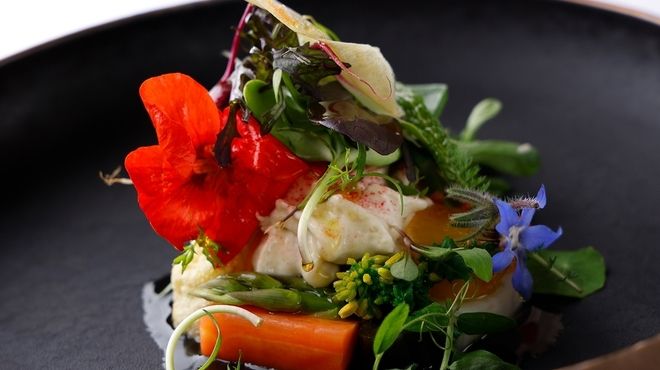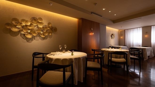 ナチュラルで高級感あふれる店内。食材との一期一会を大切にし、無駄を出さないよう丁寧に調理しています。イタリア料理の伝統的な技法を駆使しつつ、日本各地の旬の食材を取り入れた独創的な料理をご提供。メニューはシェフのオリジナルコース料理のみとなっております。五感に訴え掛ける美しい一皿は、その日限りのお料理です。シェフの感性あふれるお料理の数々を、ぜひご堪能ください。