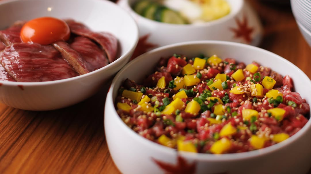 2. 黑毛和牛熟牛排碗和海胆鲑鱼子碗