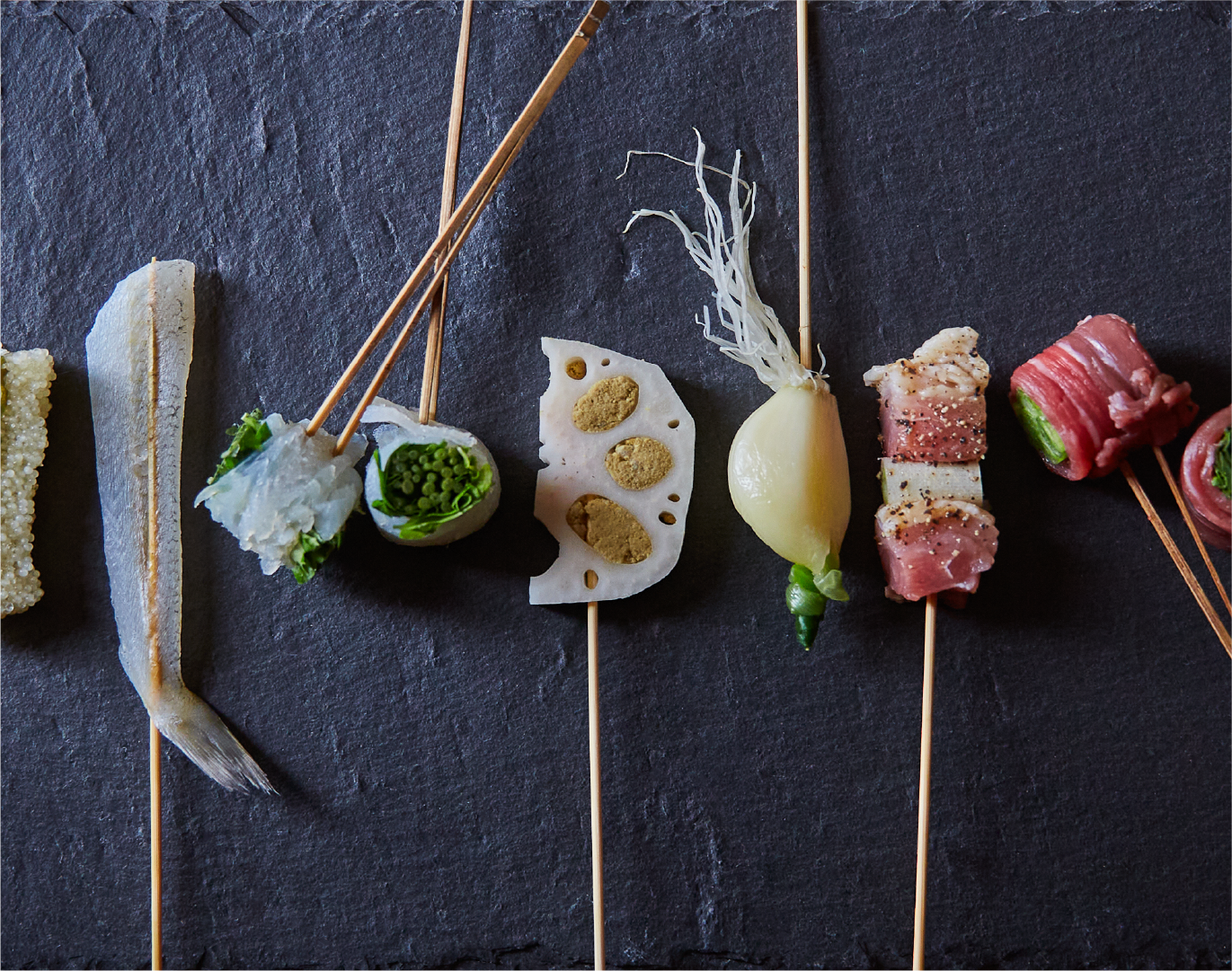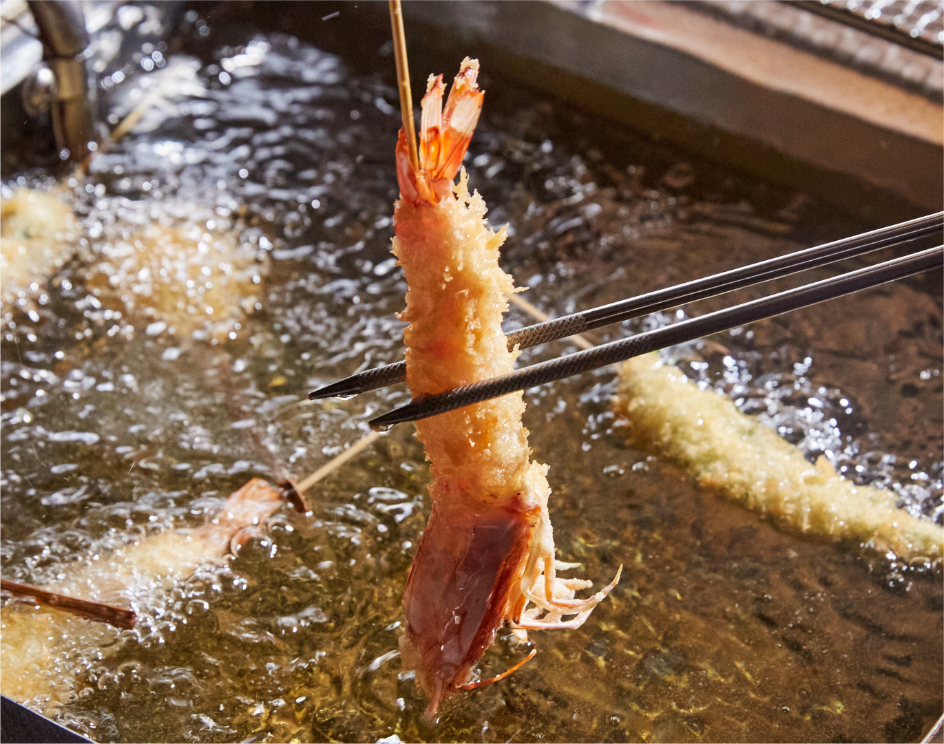 We offer over 40 kinds of skewers made with seasonal ingredients every day. Enjoy a supreme skewer, fried right in front of you.