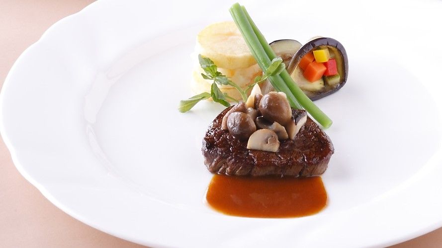 ■June-August Course Menu ・Aperitif ・Today's Hors d'oeuvres ・Today's Potage ・Grilled White Fish Tapenade and Sautéed Langoustines with White Wine Sauce and Basil Accents ・Domestic Beef Fillet Steak with Foie Gras and Demi-Glace Sauce ・Coconut Caramel Mousse with Mango Ice Cream ・Petit Fours ・Bread ・Coffee
