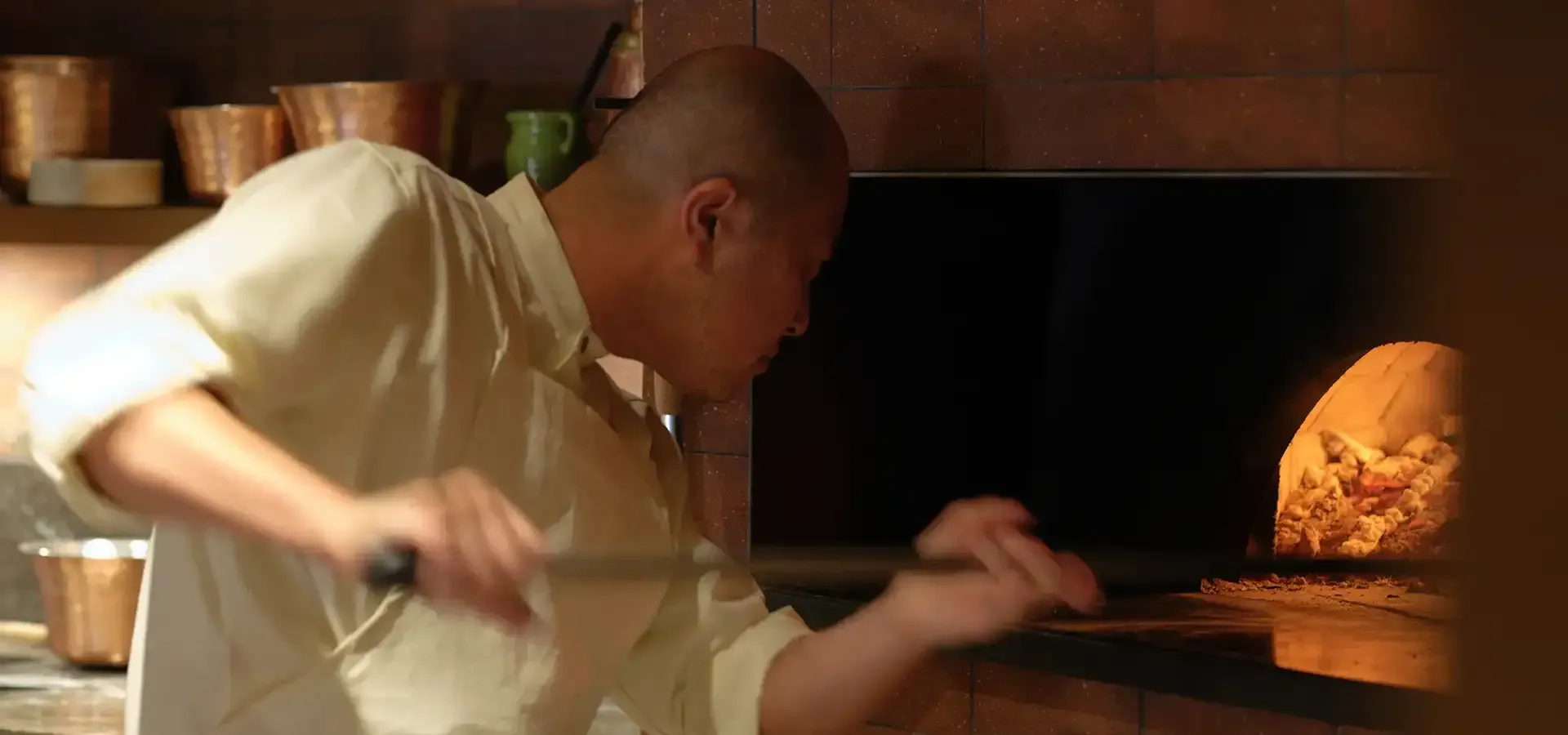 This pizza and wood-fired restaurant is run by the pizzaiolo chef Mitsutaka Suzuki, who holds the title of number one in Japan. He uses a variety of fires, including open flames and embers, to create a simple yet overwhelmingly delicious dish.
