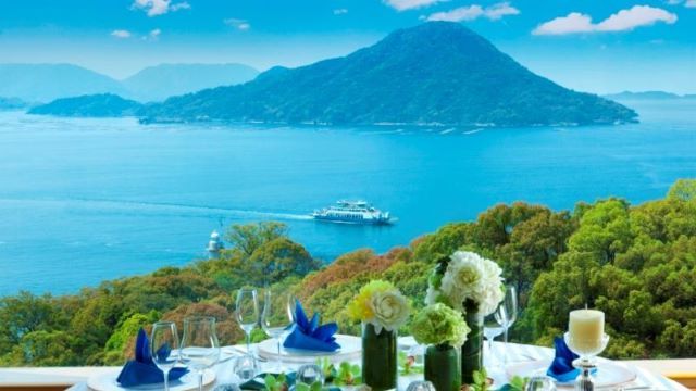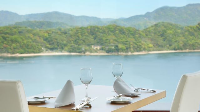 海に面したグランドプリンスホテルの22階。大きな窓から、瀬戸内海を一望できるオーシャンビュー。高級感のある、洋風スタイルのレストランです。地元の食材を積極的に使用した、ステーキとシーフードメニューをご提供します。旬の食材もふんだんに使いますので、季節によって異なるメニューをご堪能いただけます。また、メニューに最適なワインを、ソムリエが厳選していますので、料理とのマリアージュもお楽しみください。