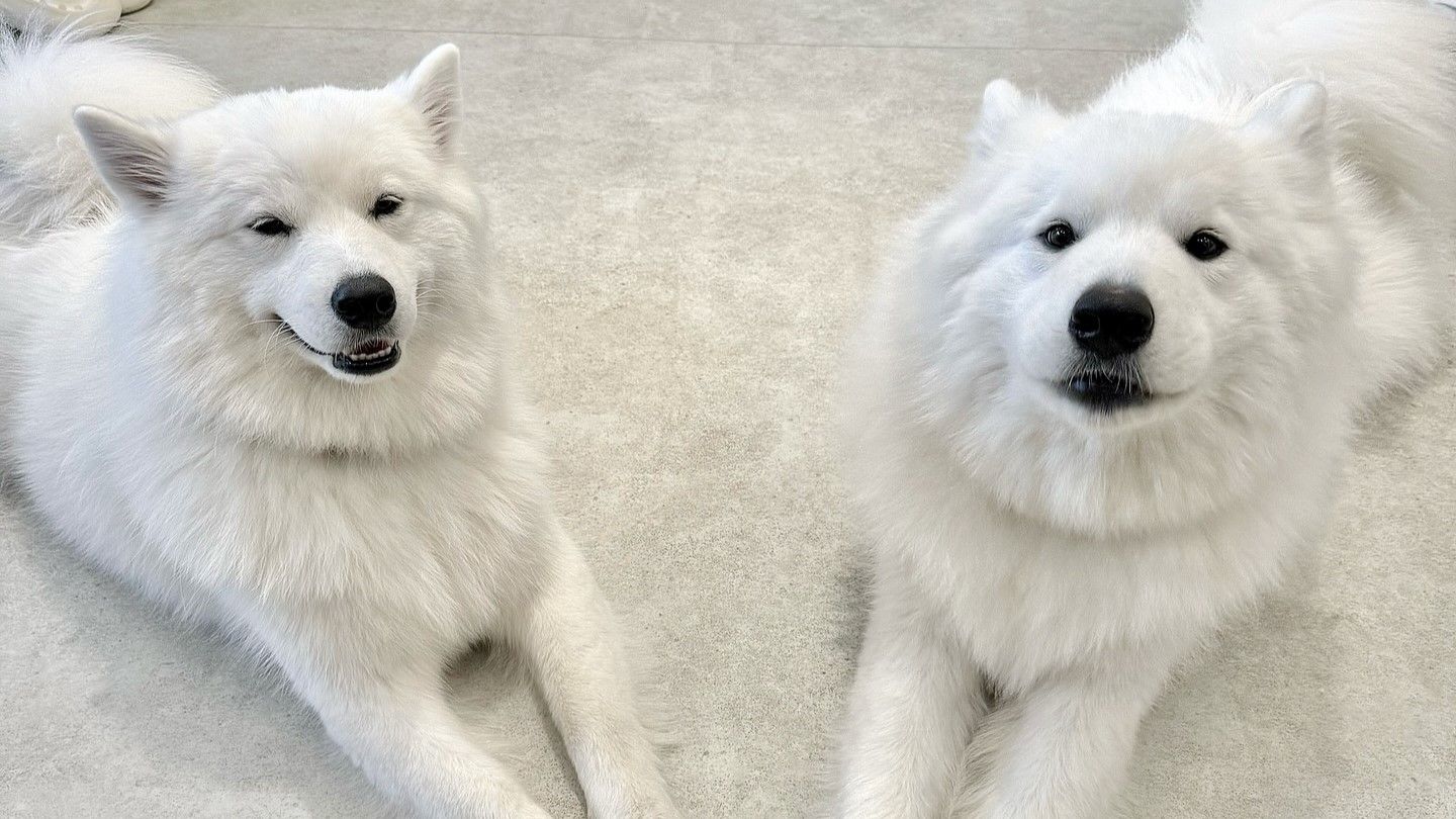 まっしろなサモエドたちと過ごすほっとするカフェ