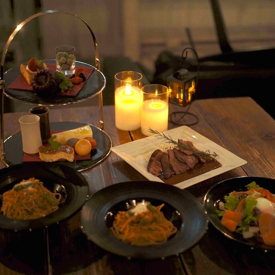 24/7 coffee & roaster ujina 自慢の焼き立てホットケーキ なども選べる少し特別なディナーデットをご用意いたしました。記念日やお誕生など大切な1日のお祝いにも。