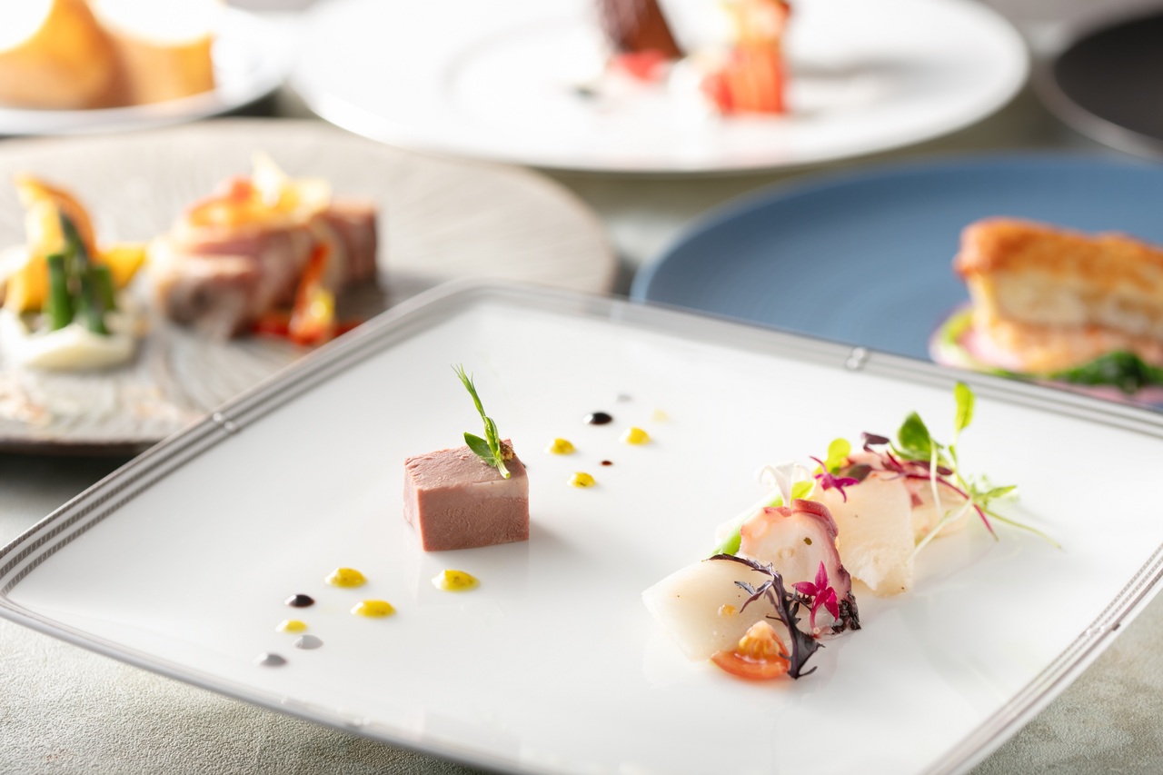【前菜】香草でマリネした鰹の炙りとキャビアオーベルジーヌ
