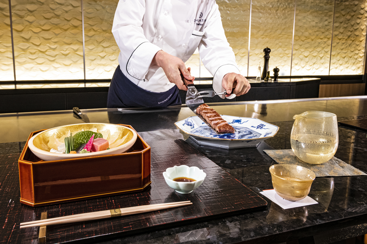 徳留料理長の熟練の鉄板技術と日本料理の出汁や旬の食材の神髄を最大限に活かした、五感で味わう芸術的なコース。鉄板割烹と和食の調和を追求した五感で味わう贅沢な時間をお愉しみください。