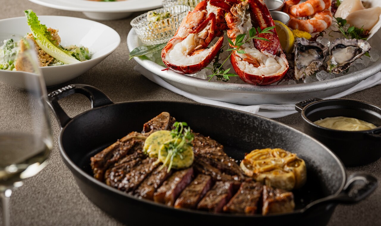 キャビアを添えた前菜やロブスターグリル、メインはドライエイジングTボーンステーキ700gと