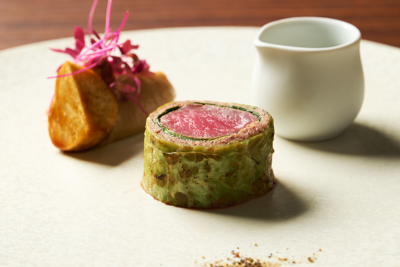 キャベツで巻いた牛フィレ肉のロースト マデラ酒のソース