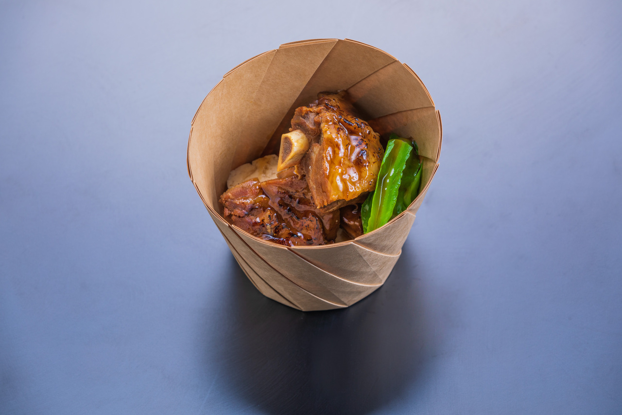 “A rice ball filled generously with juicy pork and egg on Okinawan-style seasoned rice, accompanied by two chef’s choice side dishes. Enjoy this special set and savor the flavors of the island for breakfast, available for dine-in or takeaway.”