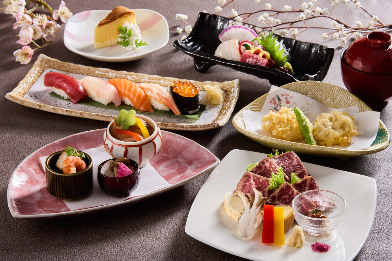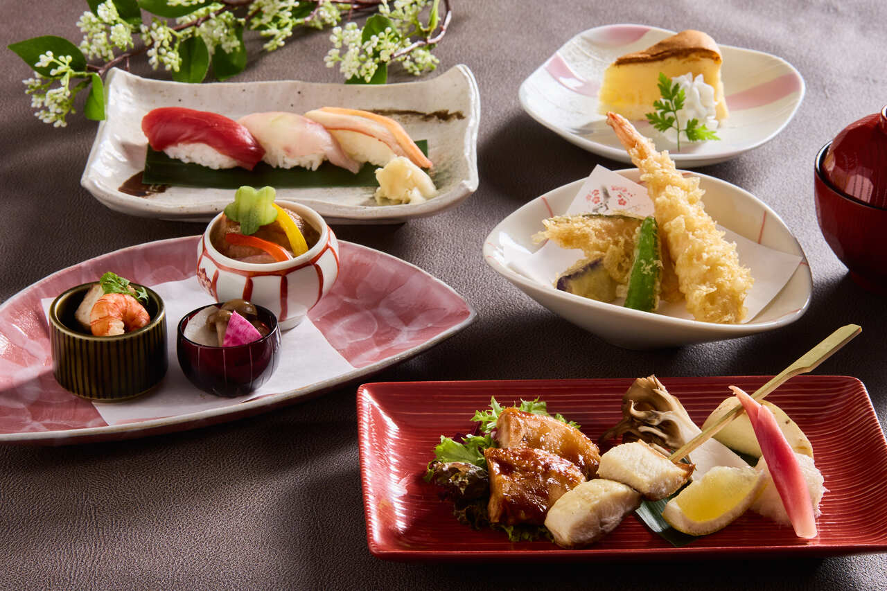 Includes 8 pieces of nigiri, makimono (rolled sushi), tempura, a soup, and a side-dish buffet.