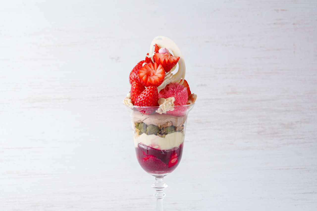 濃厚なチョコレートと瑞々しい"いちご”が主役のパフェ。