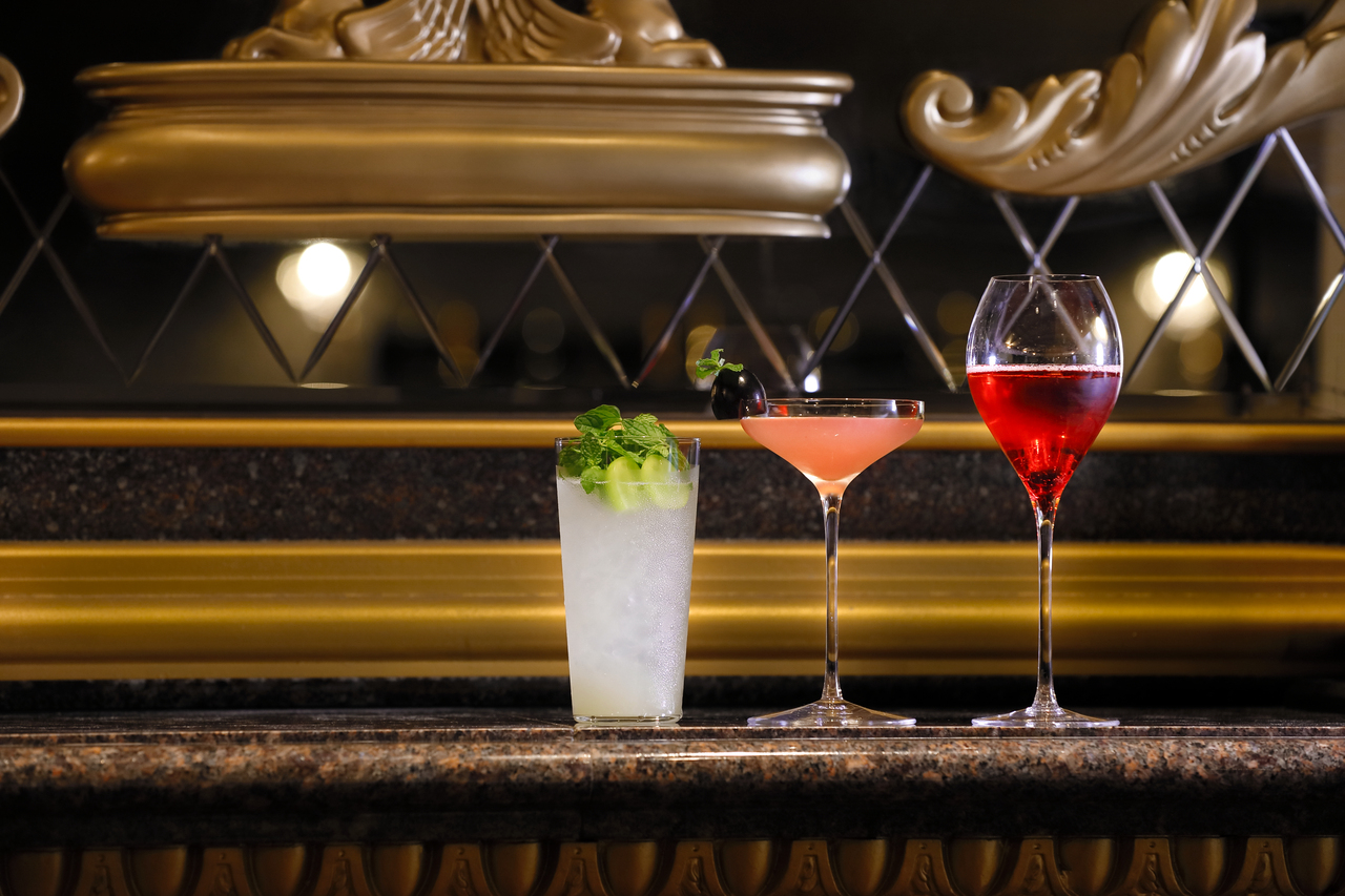 香槟鸡尾酒与甜点摆盘。请于当日选择您偏好的香槟鸡尾酒。