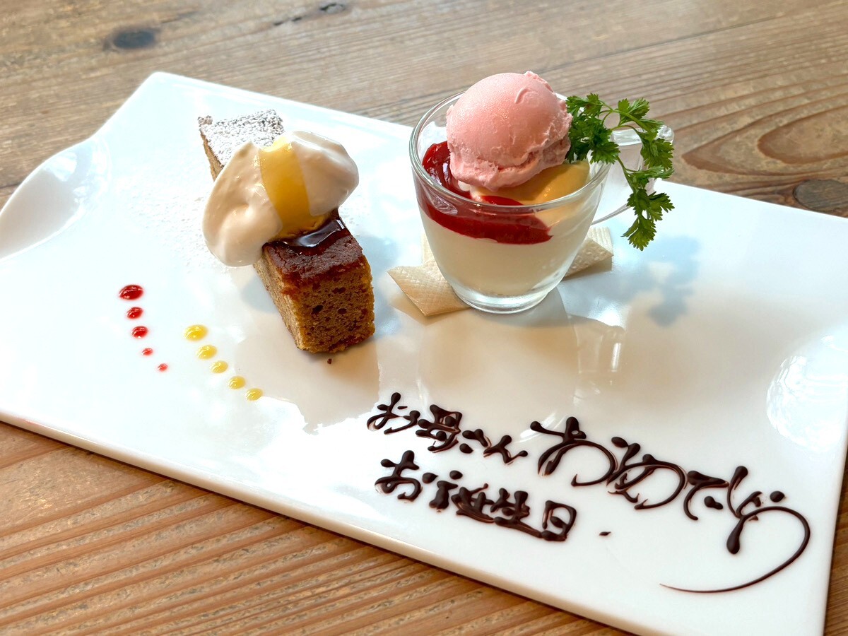 【ランチタイム限定】お祝い用のメッセージ付きデザートプレート(※1名様サイズ)